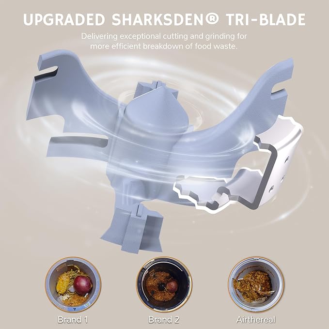 - ♻️ More Reliable Blades: The Upgraded SHARKSDEN Tri-Blade revolutionizes waste disposal with its serrated enhancement, delivering exceptional cutting and grinding for more efficient breakdown of food waste.