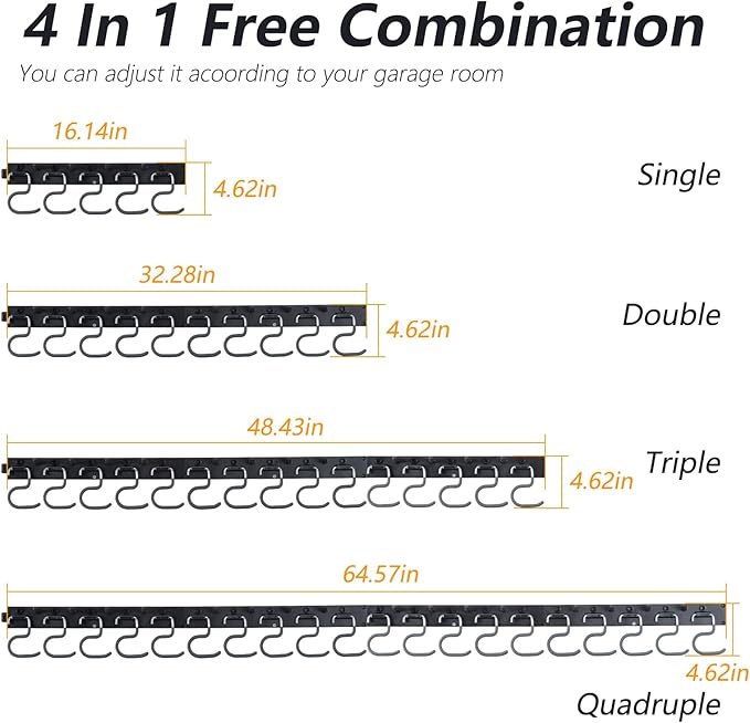 - 4 In 1 Free Combination: The 64'' storage system has four rails, which can be either installed individually with an end cap or interlocked with each other. You can combinate it as you please.