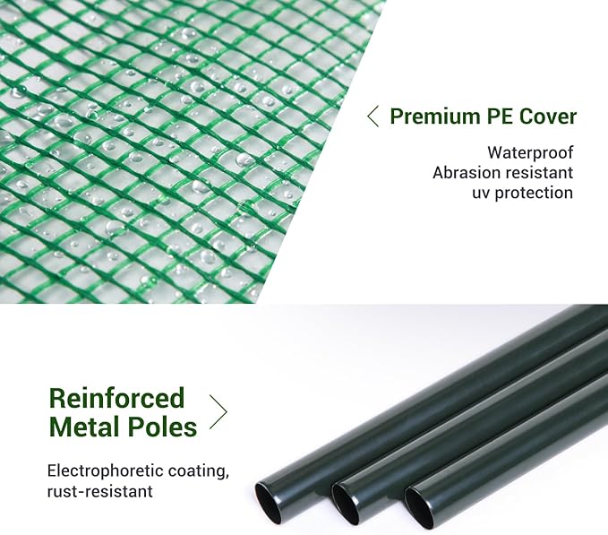 - Built to Last: The reinforced tear-resistant, waterproof, wear-resistant, corrosion-resistant, and UV-resistant PE mesh cloth ensures durability. Sturdy thickened tubes connected by PP plastic joints, along with reinforced side, back, and doorways, provide stability