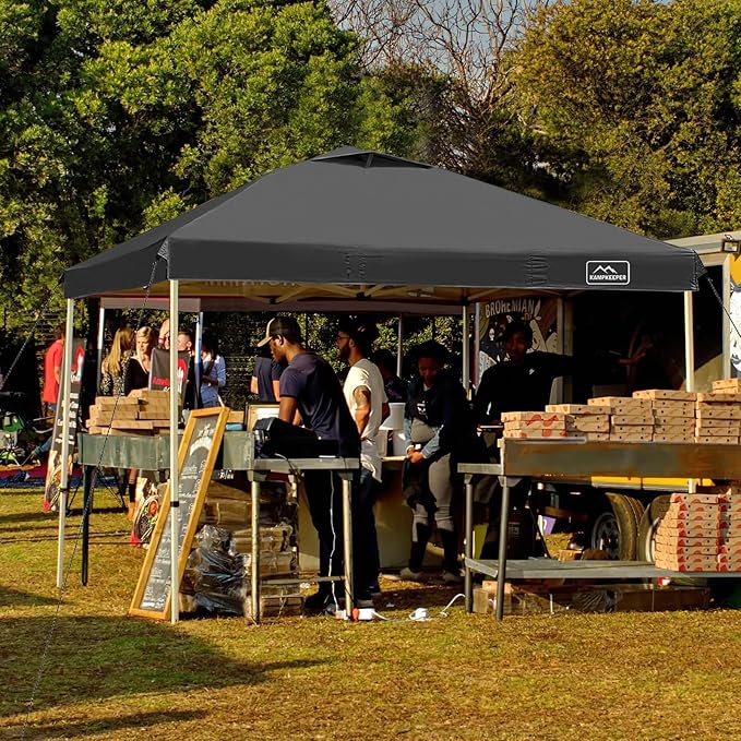 KAMPKEEPER Replacement Top Pop Up Canopy Tent Cover Roof with Air Vent and Adjustable Elastic Strap, Polyester UV Waterproof for Outdoor Garden Patio Sun Shade(Top Only) (Black, 8x8FT)