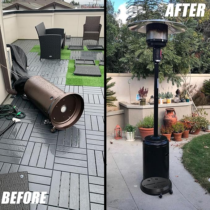 - High Quality Materials: Crafted from high-quality resin material, this patio heater base weight box is built to withstand the rigors of outdoor use. It ensures your patio heater stays put on outdoor, Bringing warmth to you in the cold winter.