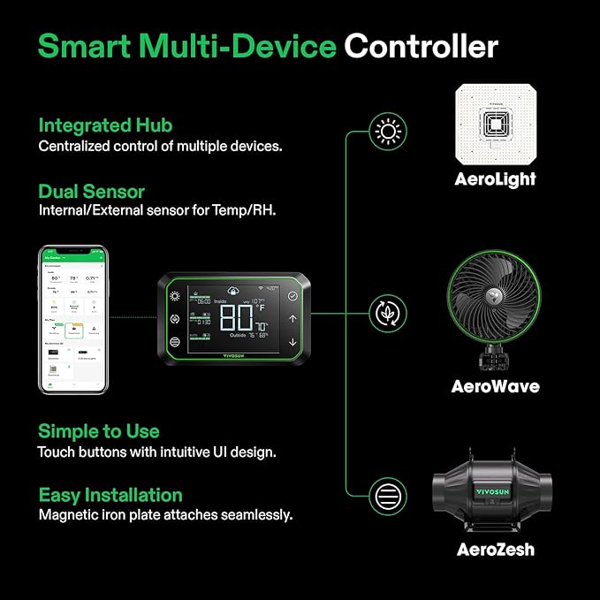 - Smart Grow with GrowHub E42A: With a built-in temp and humidity gauge and one probe, the GrowHub E42A Controller monitors changes in both the internal and external environment including VPD; WiFi connectivity and app control allow you to access real-time data and remotely manage equipment from anywhere