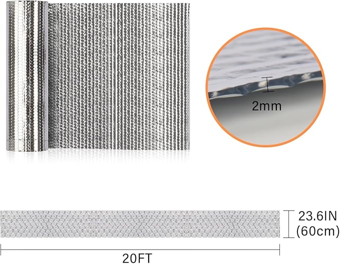 Double Reflective Insulation Roll, 23.6''X20' Double-Sided Aluminum Bubble Roll, Rv Window and Window Insulation for Winter and Summer, Garage Door, Roof, Car