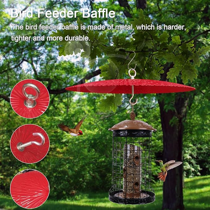 - 【Simple and Elegant Appearance】 The bird feeder baffle features a hanging design with a simple and elegant appearance that can harmonize with various styles of gardens or outdoor environments. It adds a touch of beauty to the bird feeder, making it a stunning focal point in your garden.