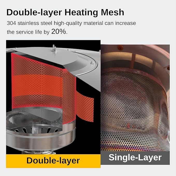 - ๐ ๐ผ๐ฟ๐ฒ ๐๐๐ฟ๐ฎ๐ฏ๐น๐ฒ ๐๐ผ๐๐ฏ๐น๐ฒ-๐น๐ฎ๐๐ฒ๐ฟ ๐๐ฒ๐ฎ๐๐ถ๐ป๐ด ๐ ๐ฒ๐๐ต: High-quality 304 stainless steel is used in our double-cover heating mesh design. Compared with a traditional single layer burning mesh heater, the EAST OAK Outdoor Heater is stronger, more durable, and safer, and the service life is improved by 20%