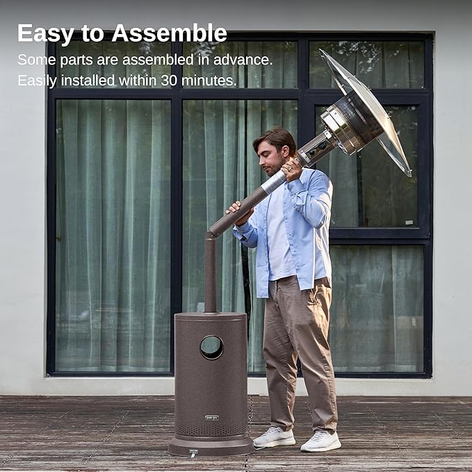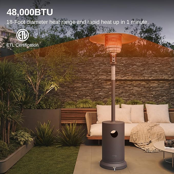 - ๐ฃ๐ผ๐๐ฒ๐ฟ๐ณ๐๐น ๐ฐ๐ด,๐ฌ๐ฌ๐ฌ ๐๐ง๐จ ๐๐ฒ๐ฎ๐: Our outdoor patio heater measures 48,000 BTU to spread heat up to an 18-foot diameter from its central heating position. With ETL certification, it is ideal for outdoor and commercial use, and can be placed in an outdoor balcony, garden, swimming pool, etc