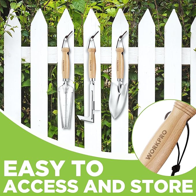 - Garden Weeding Tools for Gardening: The garden hand tool set includes a hand trowel, crack weeder, and hand weeder, which is made of high-quality polished stainless steel, and is extremely resistant to rust and corrosion. This ensures that it won't deform, bend, or break during use, WORKPRO gardening tools kit is very useful for all your weeder needs, such as digging, removal, weeding, loosening soil, aerating, and transplanting.