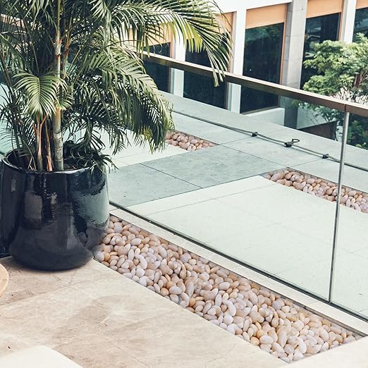 - NATURAL RIVER ROCKS: Lechloris provide you with durable, high quality, non-toxic and eco-friendly rocks from natural. Pebbles are high polished to produce the most consistent in color, without blemished to last years and resists fading for long-lasting beauty. Use our cream white rocks as a cost-effective substitute to mulch along outdoor landscape design,their natural propertis will make them last longer.