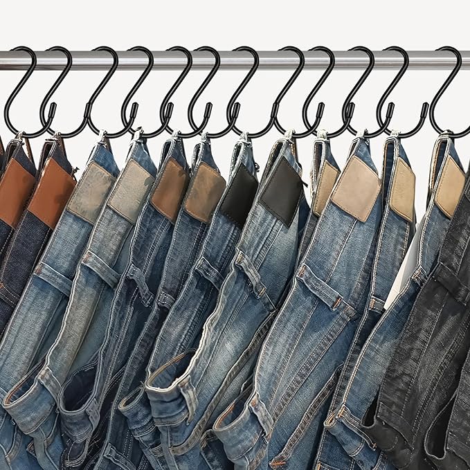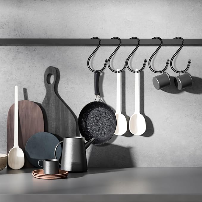 - Rubber Coated Non-Slip Hooks:Our s hooks for hanging plants surface are coated with vinyl rubber and two rubber stopper on the end,which is rust-resistant, slipping and resist falling , you don't need to worry that these hooks would scratch your clothes or purse,scarf, jeans among using, and these closet s hooks would not Fall off when you remove the item.