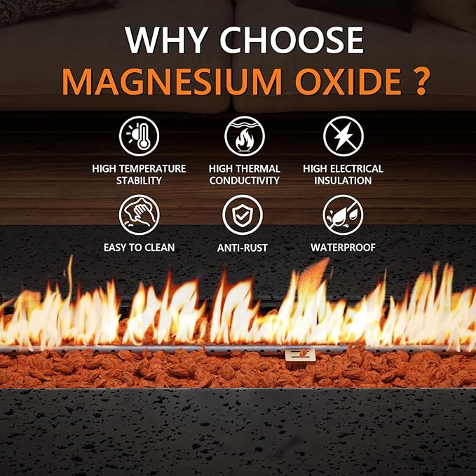- đ„ăMesmerizing Flamesă: The ultramodern terrazzo white finish is something you'd expect to see in a chic SOHO loft space or art opening with it's simple, unobtrusive style. All built to last from sturdy, fire retardant magnesium oxide with a stainless steel burner bowl, low maintenance and resistant to heat. Lights with the push of a button and flame intensity is controlled by the turn of a knob.