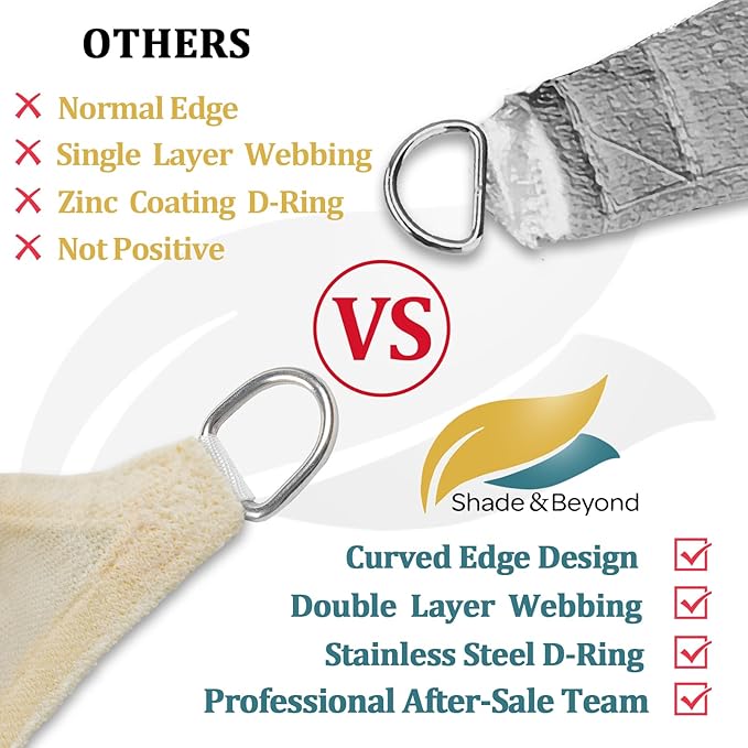 - High-Quality Fabric: Made from 185 GSM UV-protected high-density polyethylene (HDPE) shade fabric with strong stitched seams and durable stainless steel D-rings in each corner; the curved edges enhance stability