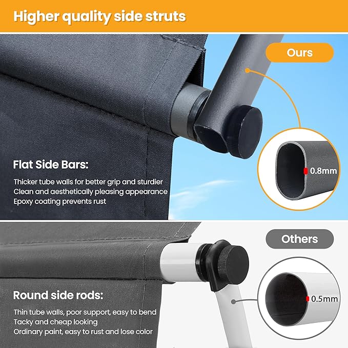 - Larger shading area: Compared to the traditional 120cm side rails in the market, our side rails are extended to 150cm, so you can get more shade. Our retractable patio awnings can easily reduce the room temperature by 2°C, which is not only energy efficient, but also won't block your view.