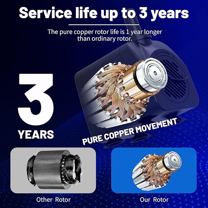 - 【Quality & Ultra Quiet】In order to keep the pump quiet and has a longer service life, increased the cost by using high quality rotor and copper,makes the pump quiet & has longer life than others.