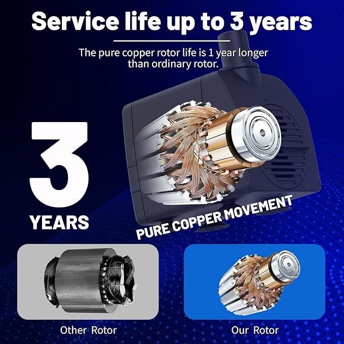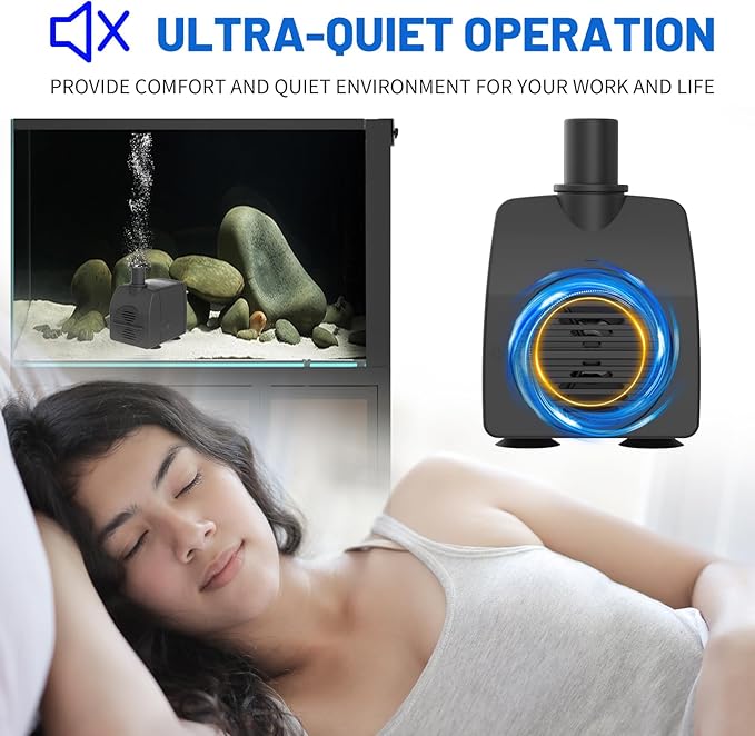 - 【Quality & Ultra Quiet】In order to keep the pump quiet and has a longer service life, increased the cost by using high quality rotor and copper,makes the pump quiet & has longer life than others.