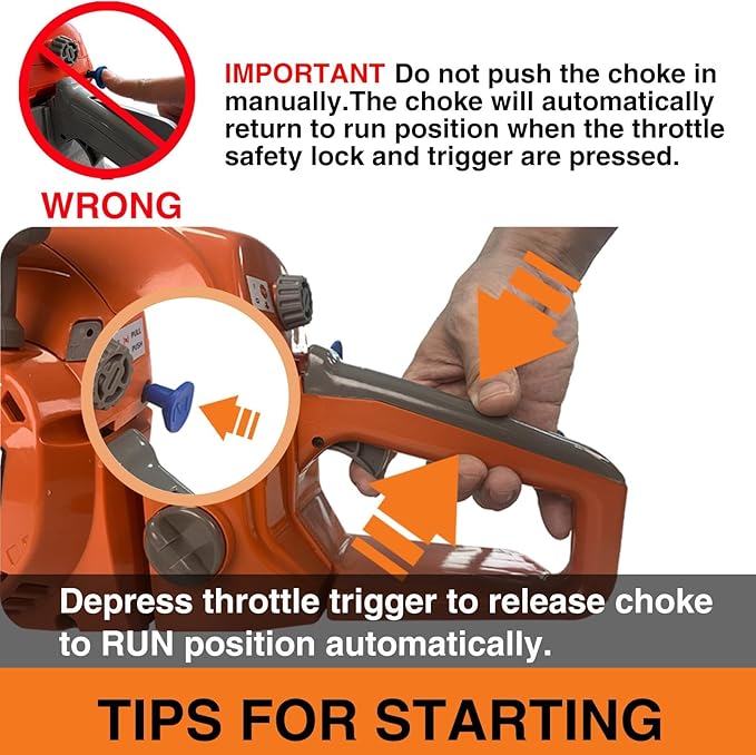 - 20inch Chainsaw Bar: The bar has an inertia-activated chain brake to reduce the likelihood of injury due to kickback, the built-in steel bar spring makes it flexible and fast-rebounding, reducing starting resistance, so that the elderly and women can easily use it