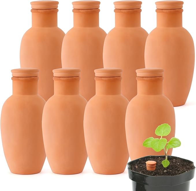 8pcs Ollas Self Watering Terracotta Planter Terra Cotta Clay Watering Spikes for Indoor Outdoor Plants - Large Reservoir Bulbs