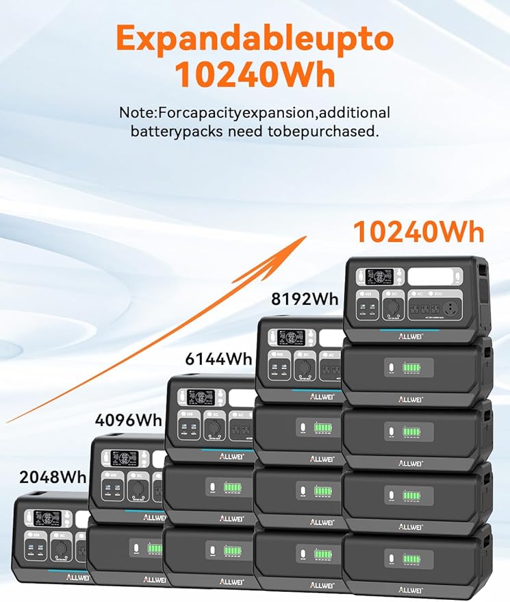 - 【10-Year Long-Lasting LFP Battery】ALLWEI PPS2400 Portable Power Station with LiFePO4 Battery: 3500+ Cycle Life, 10-Year Durability for Safe & Reliable Outdoor Energy Solutions. The BMS and MPPT controller offer multiple protections for worry-free adventures, making it a reliable power backup that can last longer than a decade.