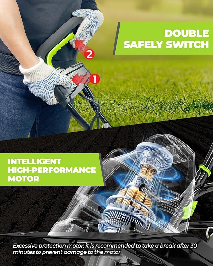 - πππ π ππππππππππ ππππ Garden cultivator tool with the double safe feature, safety button, and over-temperature protection not only keep human people safe but also keep the machine safe, with a long life.