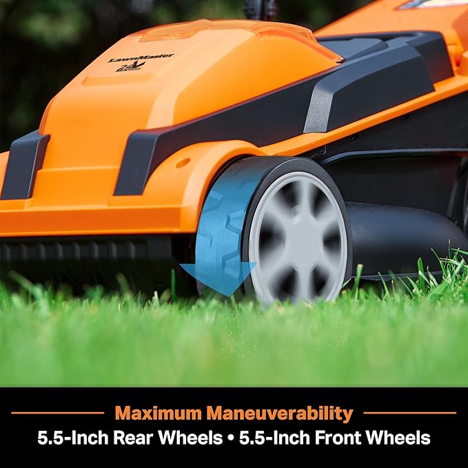 - MAX MANEUVERABILITY: Features a 13-inch deck width and 5.5-inch rear wheels for easy navigation around the lawn