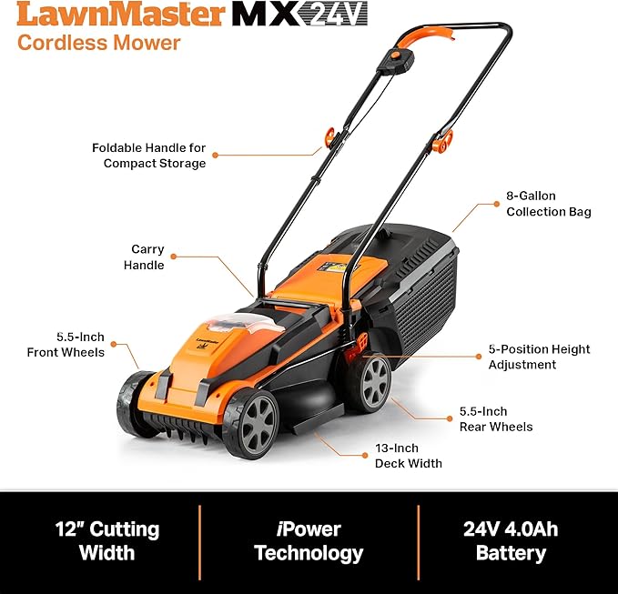 - iPOWER TECHNOLOGY: Save energy and gain efficiencies while mowing your lawn with this intelligent and automatic power management system