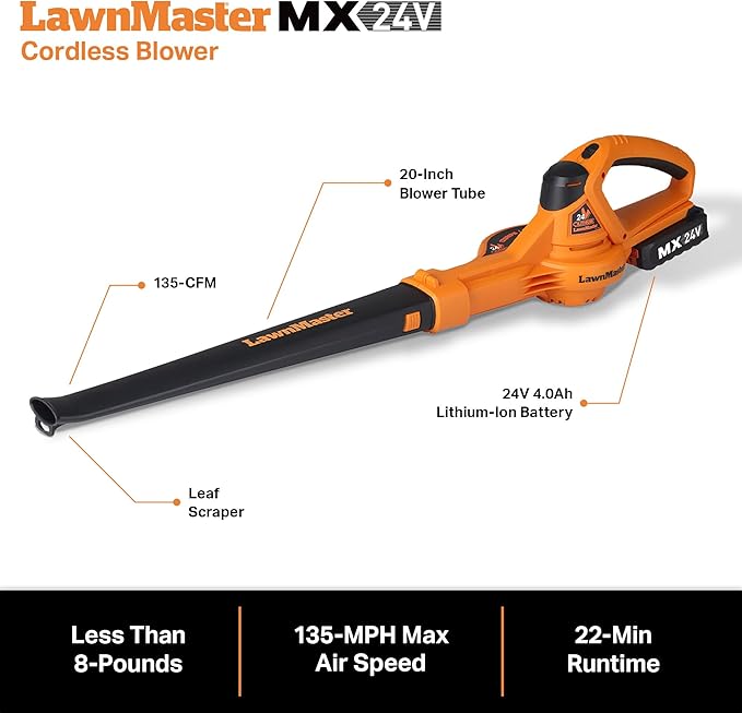 - POWERFUL PERFORMANCE: Tackle your yard with 3,700 RPM power with the LawnMaster mower and then tidy up with the blower featuring 135-MPH of maximum air speed