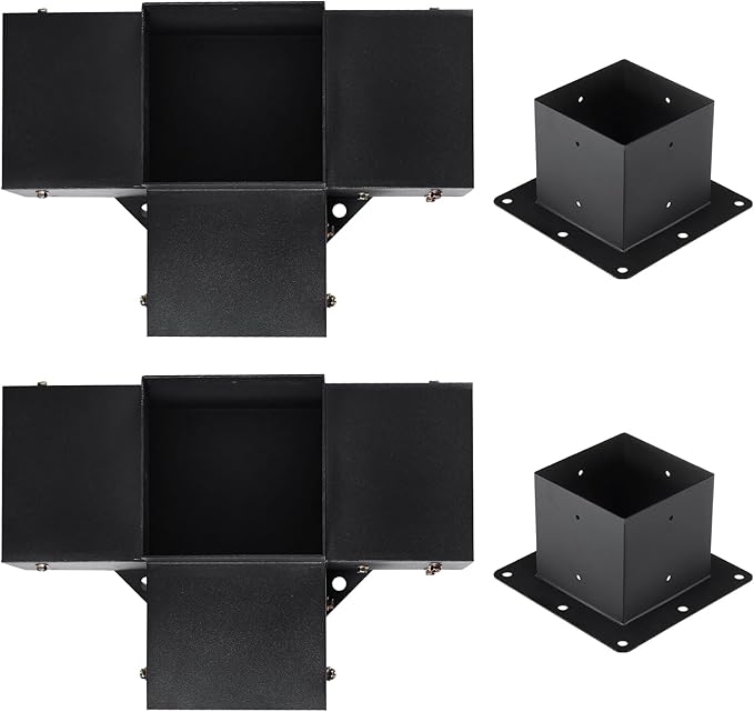 - 6x6 Inch Four-Way Pergola Brackets: This durable and strong pergola bracket kit that covers wooden beams, keeping them from rotting due to rainwater and harsh sunlight. It is designed for the mainstream 6x6 Inch specifications and can accommodate actual dimensions of 5.5 x 5.5 inches (142 x 142 mm) for both soft and hardwood