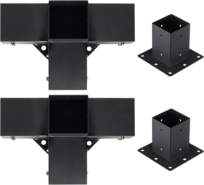 - 4x4 Inch Four-Way Pergola Brackets: This durable and strong pergola bracket kit that covers wooden beams, keeping them from rotting due to rainwater and harsh sunlight. It is designed for the mainstream 4 x 4 Inch specifications and can accommodate actual dimensions of 3.5 x 3.5 inches (92 x 92 mm) for both soft and hardwood
