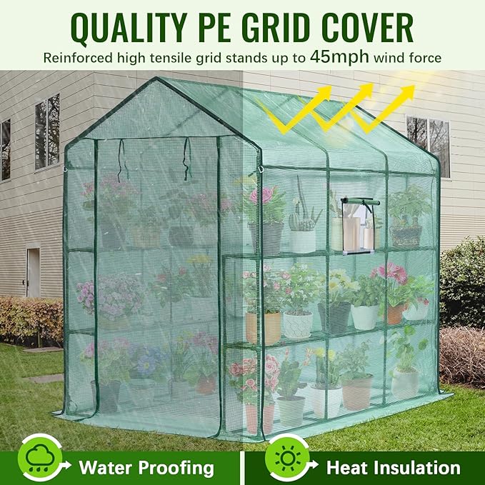 - Excellent Greenhouse for Plants Growth: No longer worry about winter cold, rainstorms, rodents, or insects. Greengro green house provide an enclosed space for plants to thrive, featuring a high-quality frame, thick polyethylene cover, sturdy zippered door, and screened windows. This greenhouses regulates external airflow, effectively controlling temperature and moisture levels, creating an excellent growing environment for potted plants and seeds in all seasons