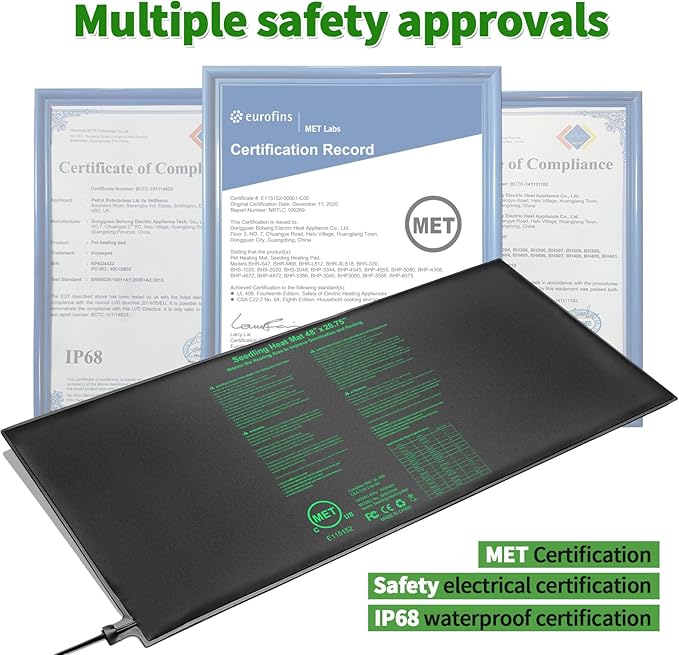 - 🌱【MET STANDARD&WATERPROOF MATERIAL】: Package include: 1 pack 48" x 20" heat mat, Larger standard sizes, more affordable access. Made of heavy duty PVC material that is durable and tear resistant.The heating mat is rated to IP67 waterproof against splashes, showers and sprays and also easy to clean by rinsing and wiping.