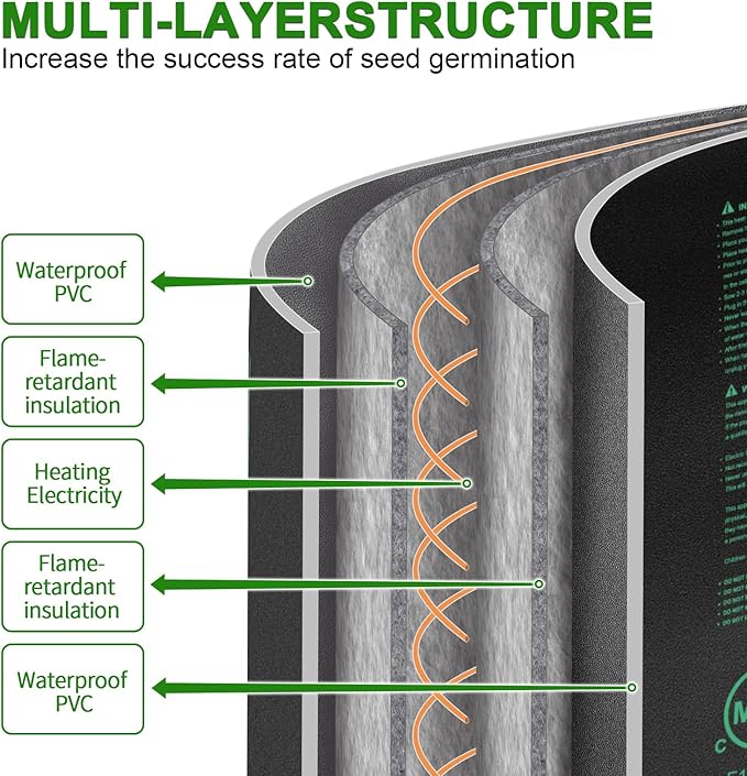 - 🌱【MULTI-LAYER STRUCTURE】: The strong heating wire and upgraded thicker multi-layer structure offers more uniform heating and durability.The even heating distribution heating can avoid overheat or scorch the delicate roots.