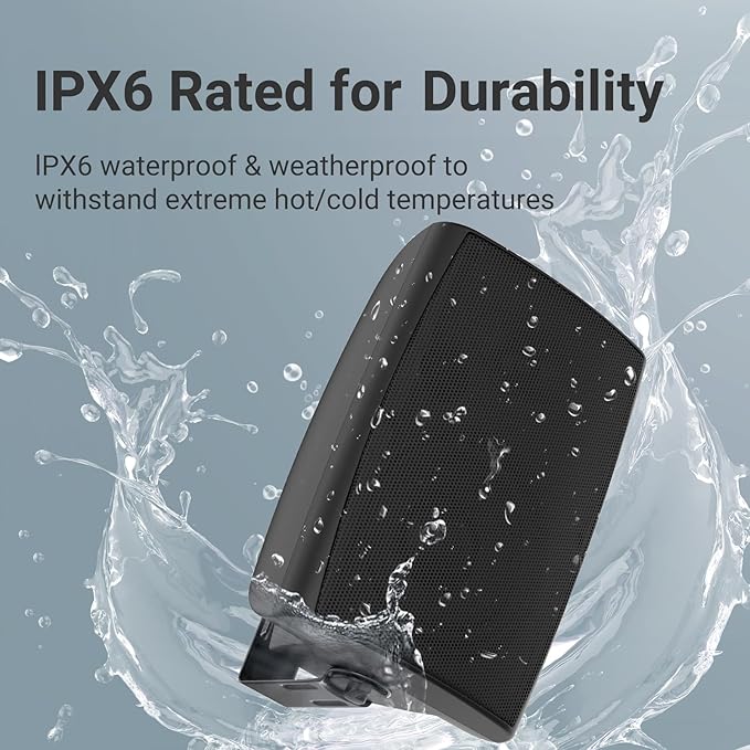 - IP66 Waterproof Design: The 6.5 Inch outdoor wall mount speakers are engineered with a rugged and durable build that withstands harsh weather conditions. They're designed to resist water, dust, ensuring high-quality sound performance throughout the year,so it can be installed in any open space—by a pool, in the patio or a sunroom, or tucked away somewhere in the backyard