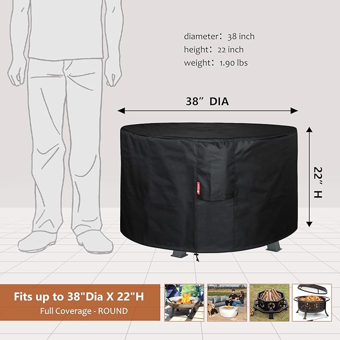 - ✅Fits round fire pits up to 38" in Diameter,cover is 22" High,can full coverage for most 35-38" round fire pit bowl,fire pit table or grill (Be sure to measure your pit before ordering)