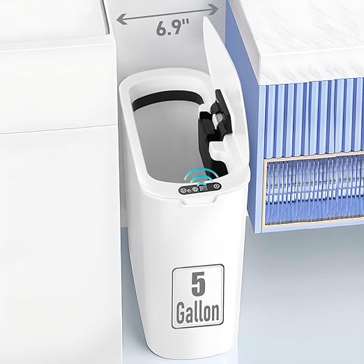 TIPGO 5 Gallon Motion Senor Bathroom Trash Can with Lid, Automatic Garbage Can Touchless, Smart Plastic Waste Basket for Narrow Spaces, Bathroom, Office, Bedroom, Living Room (White)