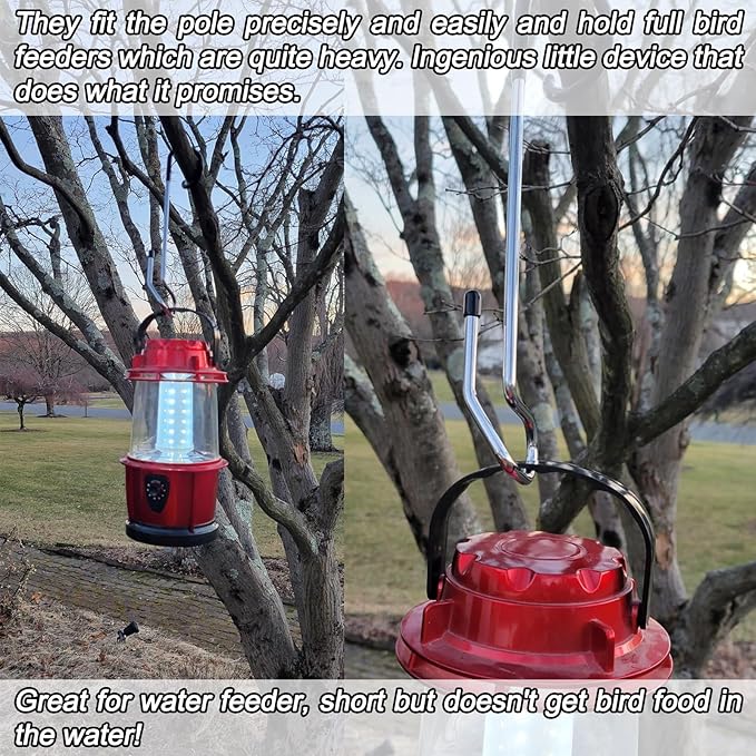 - Great Outdoor Hooks You Shouldn't Be Missed - The camp light hooks are sturdy, durable, and portable. It is perfect for outdoor and indoor use. The package includes 2 hooks and a storage bag, rich quantity is enough to satisfy you to give more spot on bird pole to add additional feeder.