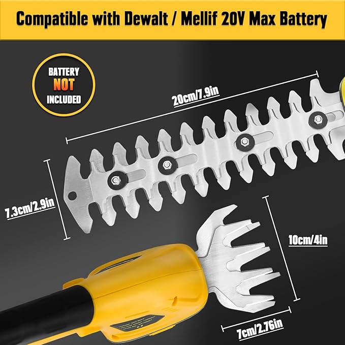 2-in-1 Cordless Grass Shear & Hedge Trimmer Compatible with Dewalt 20V Battery Handheld 4" Grass Cutter & Electric 8" Shrubbery Trimmer for Yard, Lawn, Garden, Shrub (Tool Only)