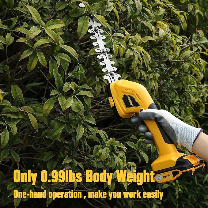 - Compact & Lightweight: Weighing just 0.99 lbs, this handheld hedge trimmer is incredibly easy to handle and carry. Its ergonomic, non-slip handle ensures a comfortable and secure grip, allowing you to effortlessly complete trimming tasks, even with just one hand