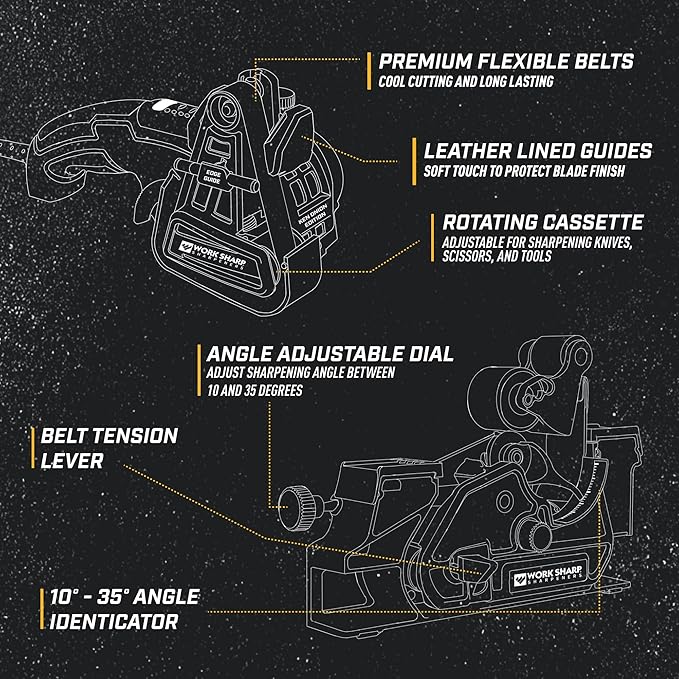 - TWO WAYS TO SHARPEN: The Sharpening Guide Cassette provides precise and repeatable sharpenings on knives, scissors, and tools, while the Blade Grinding Attachment provides larger belts, a wider range of angles, and edge profile control.