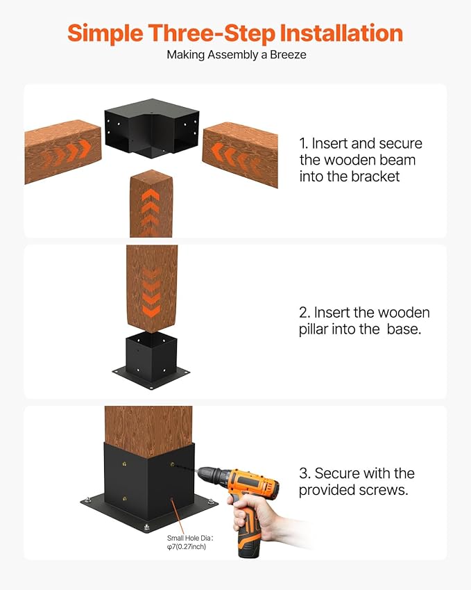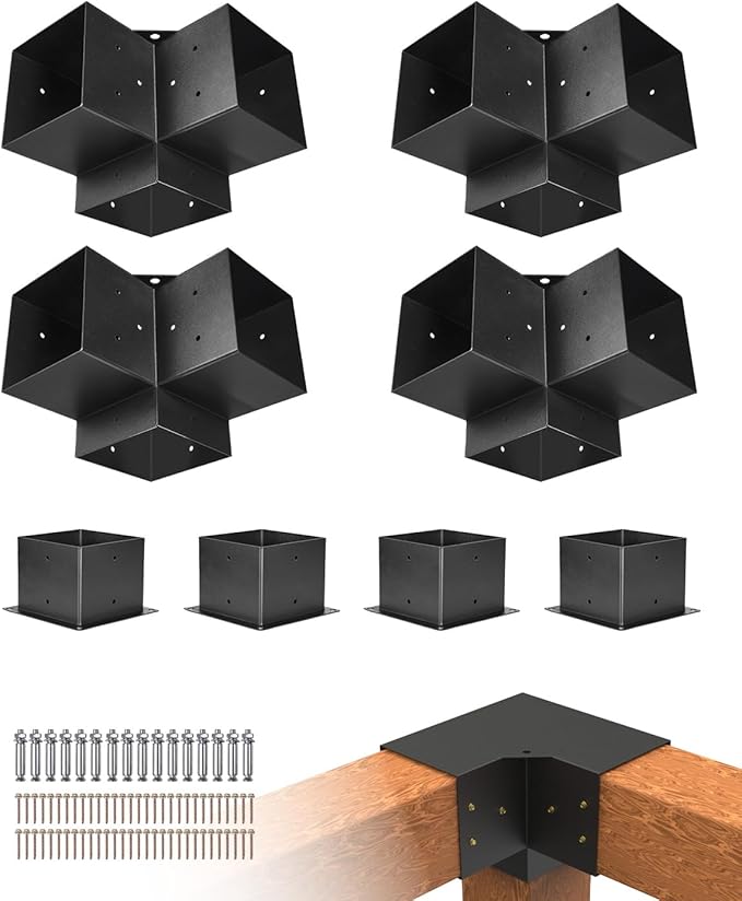 - Complete Accessories, Easy Installation: The pergola kit includes 4 x 3-way corner brackets, 4 x post base brackets, and all screws. Cut the wood, insert it into the brackets, tighten, and secure the posts into the base plates. Quick, simple assembly is easy for anyone