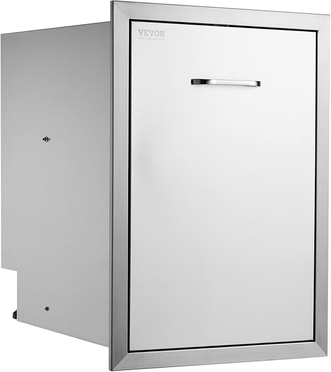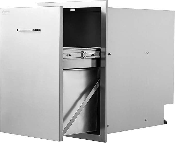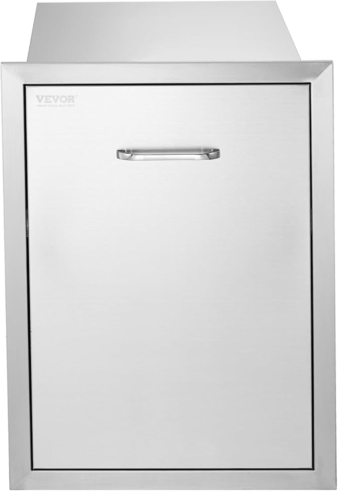 VEVOR Pull Out Trash Drawer 17.7x22.8 Inch Raised Style Trash Bin with Pull-Out Tray Stainless Steel Trash Drawer with Handle for Outdoor Kitchen BBQ Island, Trash Can NOT Included