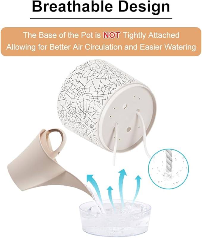 - Durable Material: Crafted from high-quality materials, these indoor plant pots are built to last. Made from sturdy plastic, self watering pots are lightweight yet resilient, ensuring they can withstand both indoor and outdoor conditions without cracking or fading. Ventilation holes at the bottom of the planting pot help prevent root rot in plants, especially in closed environments,