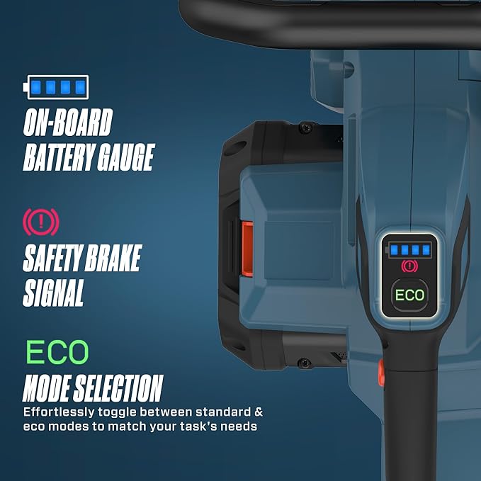 - EFFORTLESS MAINTENANCE & PRECISION CONTROL: SENIX chain saw features tool-free tensioning and automatic oiling. ECO Mode optimizes this 18 inch chainsaw battery included tool for energy efficiency while tackling delicate pruning tasks.