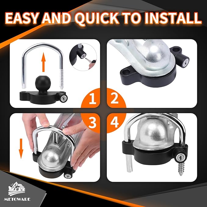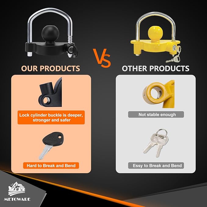 - HEAVY DUTY TOW BALL COUPLER LOCK – METOWARE Universal Hitch Lock is a newly upgraded trailer coupler lock with all metal construction. The surface of lock body is frosted, non-slip, Wear-Resistant, and Rust-Proof.