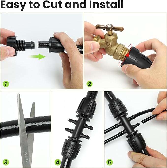 - Build your dream garden watering system effortlessly with our high-quality drip irrigation parts. Use our 1/2-inch tubing as the main line for your drip irrigation kit and efficiently water your plants. Connect the 1/4-inch tubing to the drip irrigation emitters for optimal results. Our DIY home irrigation system will enhance plant growth, making gardening a joy. Get ready for a flourishing garden - all thanks to our user-friendly 1/2 inch irrigation tubing.