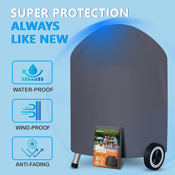22 Inch Kettle Grill Cover - Superior Charcoal Cover for Weber Original and Master Touch - 600D Outdoor BBQ Cover for 22 Inch Weber Grills and More