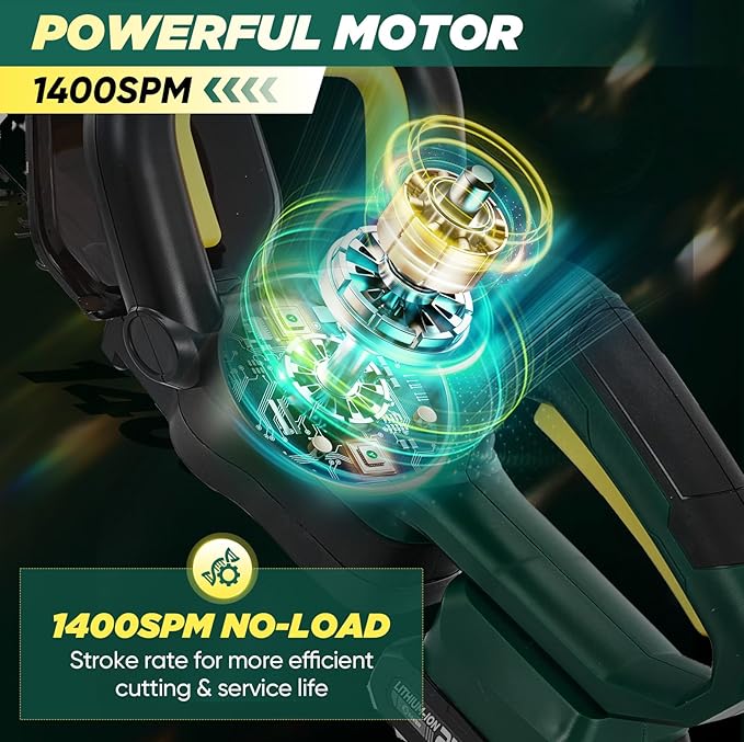 - 【EFFICIENT TRIMMING WITH POWERFUL MOTOR】The SakerPlus bush trimmer, powered by a brushless motor, achieves speeds of up to 1400RPM under no-load conditions, ensuring highly efficient cutting. This saves valuable time, energy, and money on yard trimming tasks. Ideal for trimming thin shoots on hedges, bushes, shrubs, small trees, and ornamental plants.