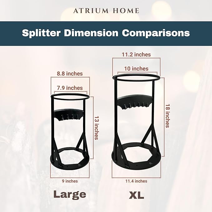 - ✔ Largest Inside Diameter – Usability is everything. We created each one of our 3 sizes to have the largest inside diameter from anyone else on the market because that is what makes them so capable. Whether you are making kindling (L) or using it as a long splitter (XXL) we have you covered. Inside Diameter L = 7.9 in, XL = 10 in, XXL = 12.5 in