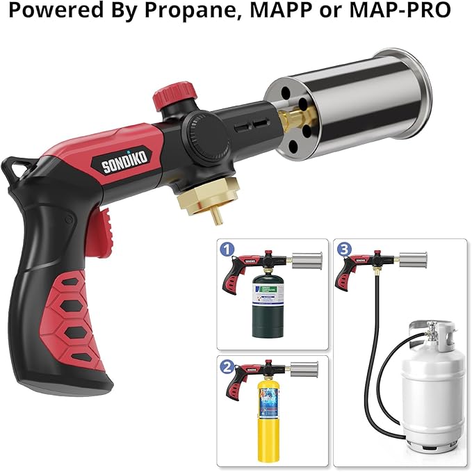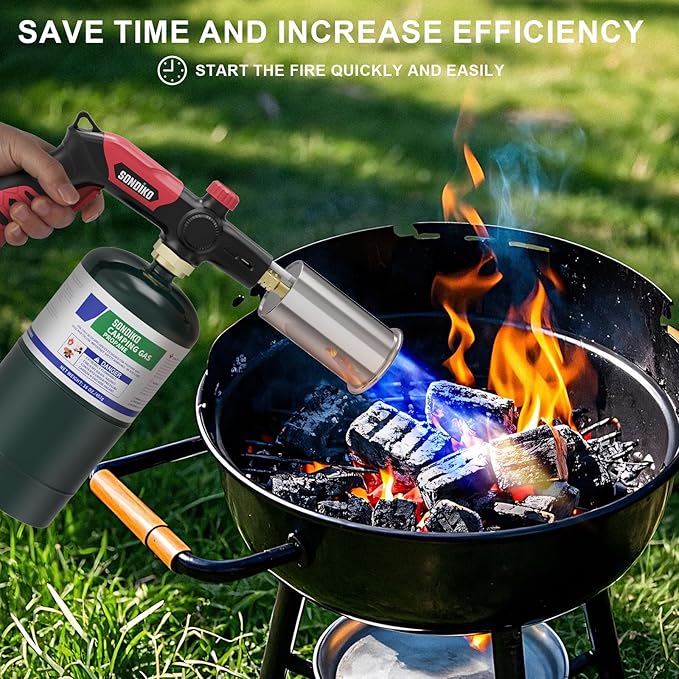 Sondiko Powerful Grill & Cooking Propane Torch L8010, Sous Vide, Campfire Starter, Adjustable Wood Torch Burner for Searing Steak, BBQ, Welding(Red & Black) Propane Tank Not Included