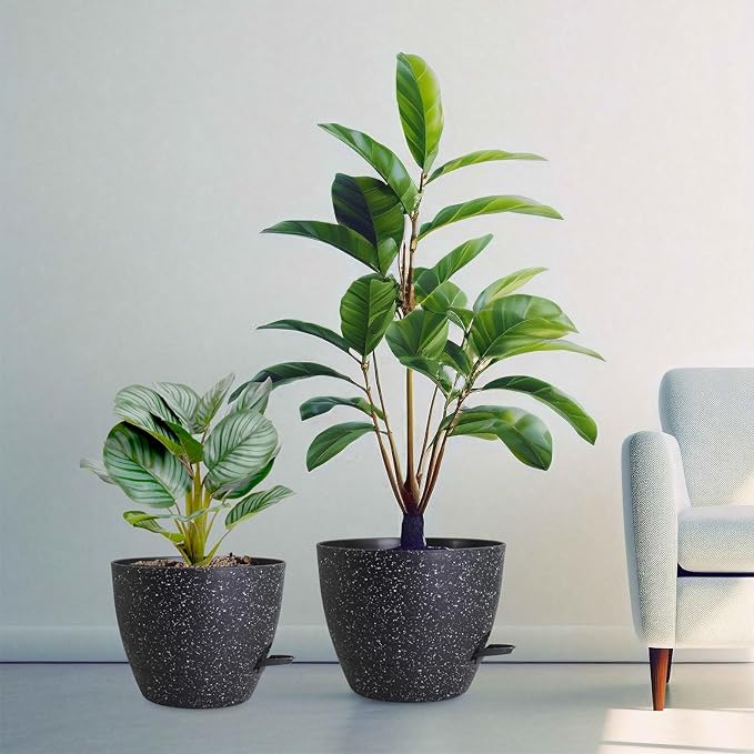 12/10/9 inch Large Self Watering Pots, Planter, Plant Pots with Mesh Drainage Holes for Indoor Outdoor Garden Plants, Plastic Flower Pots with Removable Deep Reservoir, Speckled Black