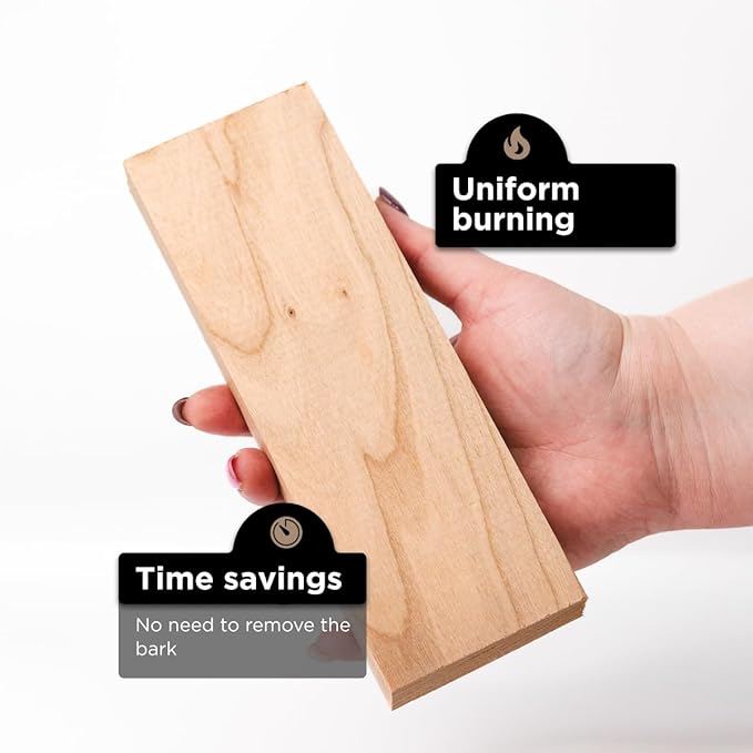 - Consistent Heat: Precisely cut wood pieces (7–8” long, 1–2.5” wide) ensure even burning. Bark-free design avoids flare-ups, giving you reliable smoke and temperature control to your smoking accessories