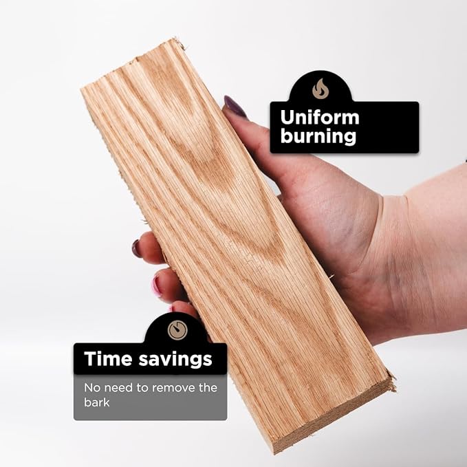 - Consistent Heat: Precisely cut wood pieces (7–8” long, 1–2.5” wide) ensure even burning. Bark-free design avoids flare-ups, giving you reliable smoke and temperature control to your smoking accessories